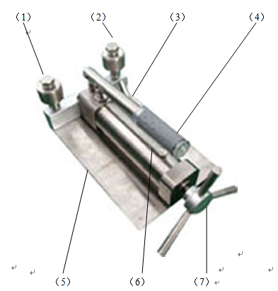 至適當(dāng)位置(中間位置)。向注液口⑹內(nèi)加入造壓介質(zhì),順時(shí)針鎖緊泄壓閥⑶,用手壓泵⑷上下抽打加壓(造壓前要將注液口螺母松開,一般手壓泵打壓40MPa左右,再用微調(diào)細(xì)調(diào)至60MPa) 然后再用微調(diào)精細(xì)調(diào)節(jié)(微調(diào)順時(shí)針旋轉(zhuǎn)為加壓,逆時(shí)針旋轉(zhuǎn)為減壓),泄壓時(shí)直接打開泄壓閥門即可泄壓。