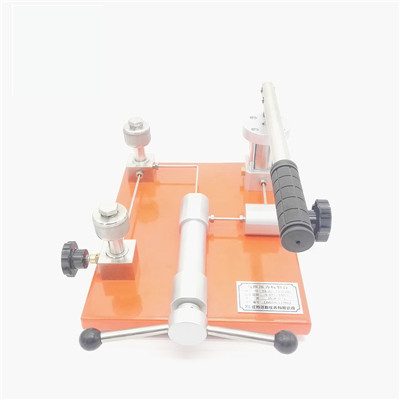 堵頭,接標準表和被檢表,打開穩(wěn)壓閥,將微調(diào)調(diào)至適當位置(中間位置),關(guān)閉放氣閥。操作杠桿加壓到2~3MPa時,使用微調(diào)將壓力調(diào)到4.5MPa左右,穩(wěn)定1~2分鐘,使用微調(diào)調(diào)至檢定點,關(guān)閉穩(wěn)壓閥,逐點檢測至零點。