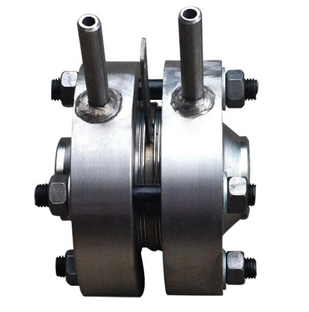 4.取壓法蘭與管道焊接前,應(yīng)先將管道上的取壓孔鉆好,其直徑與取壓法蘭上的取壓孔徑相同,焊接時取壓法蘭上的取壓孔與管道上的取壓孔對準。